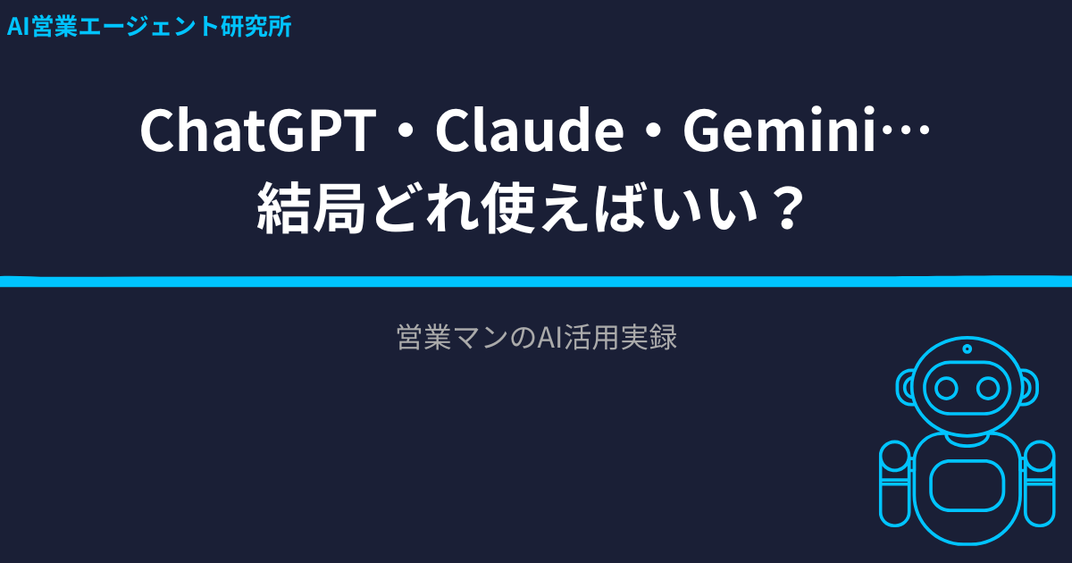 この記事では、AIツールを日常業務で使い倒している営業マンの視点から、各ツールの使い分けを本音でお伝えします。